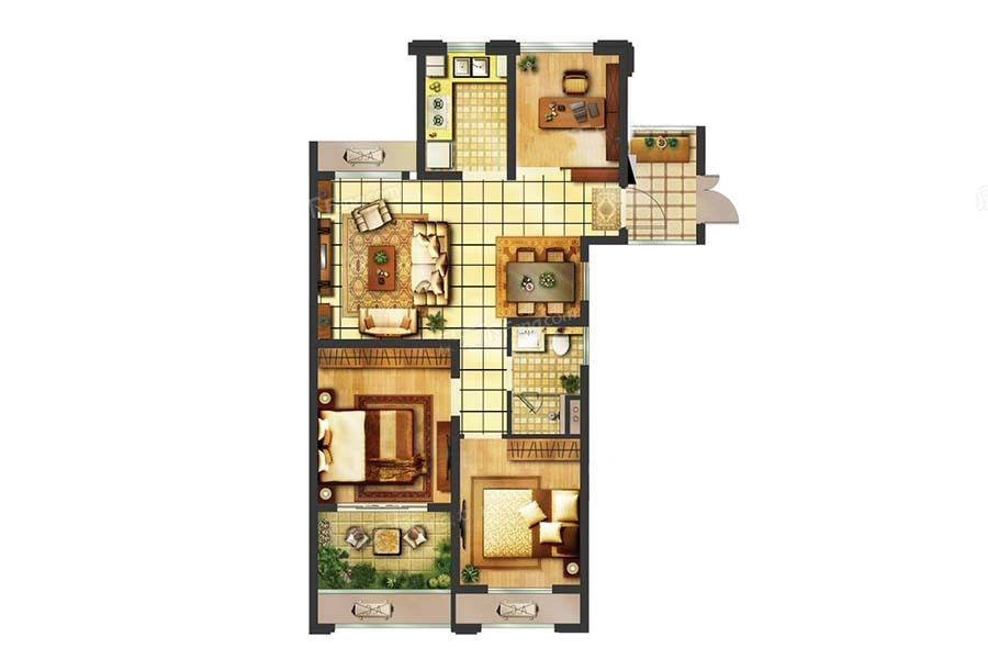 各个空间户型方正,方便室内家具布置;整个空间全明通透,采光良好,同时利于居住空间通风;卫生间门朝向主要活动区域;。厨房门对着客厅,室内通风好,则无需顾虑油烟的困扰;各个功能区的尺寸比例规范,布局合理,能很好地满足日常功能需求,整体空间开阔,采光充足,居住舒适度好;