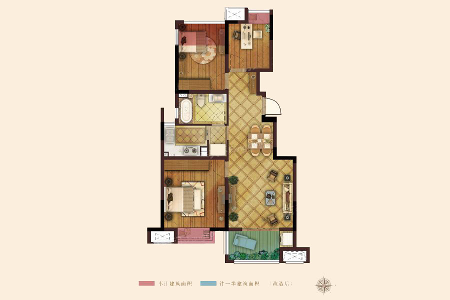 各个空间户型方正,后期空间利用率高;全明通透户型,居住舒适度较高,整个空间采光充足,利于后期居住;卧室门朝向客厅或餐厅;卧室厨卫等各个功能区的面积大小都比较合理,居住体验便利,整体舒适度高;公摊高于15%且低于25%,符合住宅公摊正常范围。