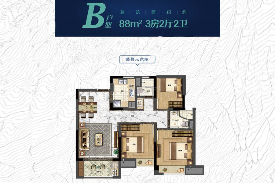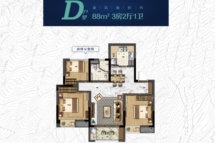 各个空间户型方正,后期空间利用率高;全明户型,各部分空间均有窗,可保证整体空间采光和通风,居住舒适度好;厨房门朝向客厅,能加装门即可规避油烟对客厅的影响;卧室厨卫等各个功能区的面积大小都比较合理,居住体验便利,整体舒适度高;