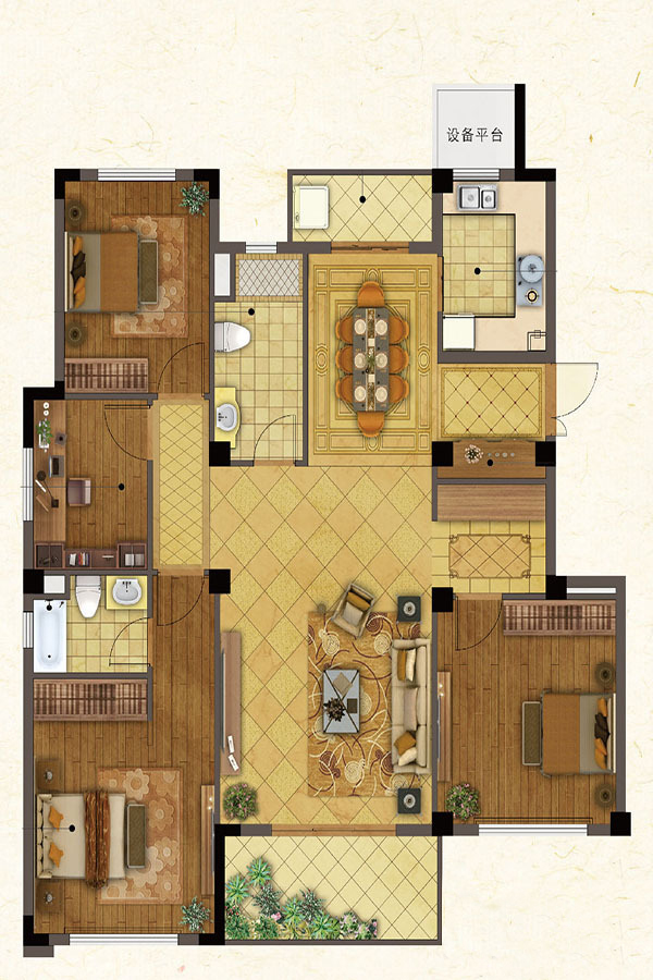 各个空间户型方正,方便室内家具布置;全明通透户型,居住舒适度较高,整个空间采光充足,利于后期居住;卫生间对着客厅不太好,有种不太礼貌的感觉。客厅、卧室、卫生间和厨房等主要功能间的尺寸以及比例适中,有利于采光和通风,居住起来舒适、方便;公摊高于15%且低于25%,符合住宅公摊正常范围。