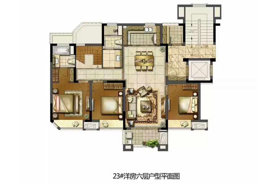 各个空间户型方正,方便室内家具布置;整个空间全明通透,采光良好,同时利于居住空间通风;整体空间布局合理,能够保证动静分离和居室通风,方便使用;客厅、卧室、卫生间和厨房等主要功能间的尺寸以及比例适中,有利于采光和通风,居住起来舒适、方便;公摊高于15%且低于25%,符合住宅公摊正常范围。