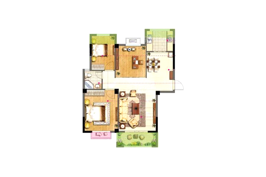 各个空间户型方正,后期空间利用率高;整个空间全明通透,采光良好,同时利于居住空间通风;整体空间布局合理,能够保证动静分离和居室通风,方便使用;各个功能区的尺寸比例规范,布局合理,能很好地满足日常功能需求,整体空间开阔,采光充足,居住舒适度好;