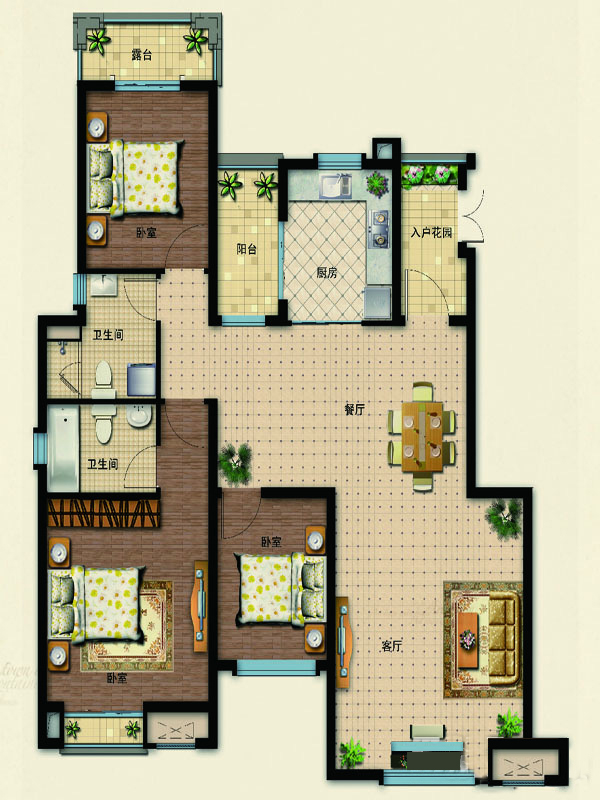 各个空间户型方正,方便室内家具布置;整个空间全明通透,采光良好,同时利于居住空间通风;居室布局合理,通风良好,动静分离,兼顾到了卧室和卫生间的私密性;各个功能区的尺寸比例规范,布局合理,能很好地满足日常功能需求,整体空间开阔,采光充足,居住舒适度好;