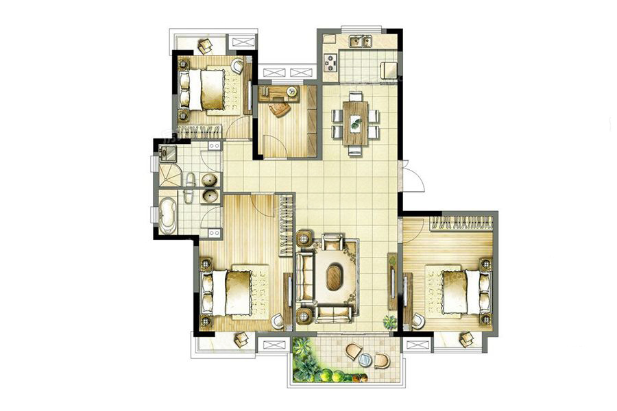 各个空间户型方正,方便室内家具布置;全明户型,各部分空间均有窗,可保证整体空间采光和通风,居住舒适度好;卧室门朝向客厅或餐厅;卧室厨卫等各个功能区的面积大小都比较合理,居住体验便利,整体舒适度高;公摊高于15%且低于25%,符合住宅公摊正常范围。